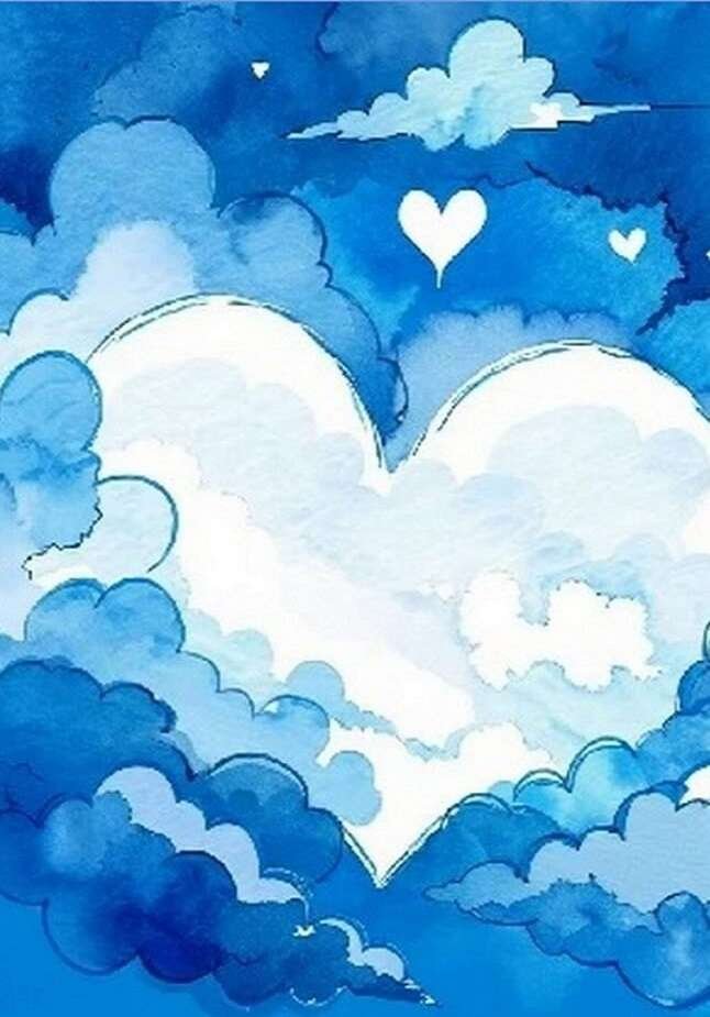 This ethereal design features a heart-shaped cloud drifting through a dreamlike sky of deep blues, in a watercolour style that is perfect for any message.